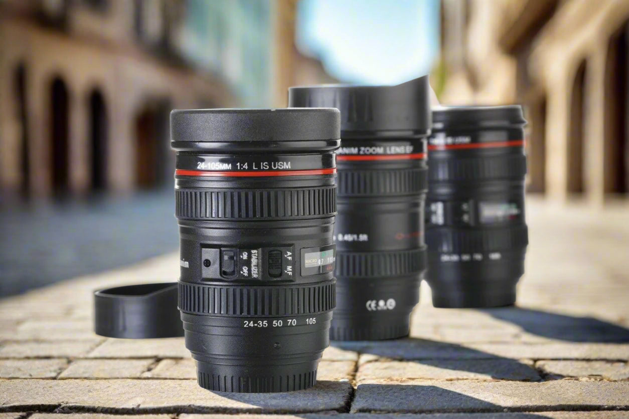 Camera Lens Coffee Mug with Lid – 350ml DSLR Lens-Shaped Travel Mug